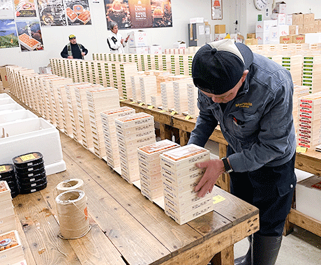 入荷された商品を受領後、卸売会社(荷受)からの指示に従い、セリ場で販売が行いやすいように準備・整列します。